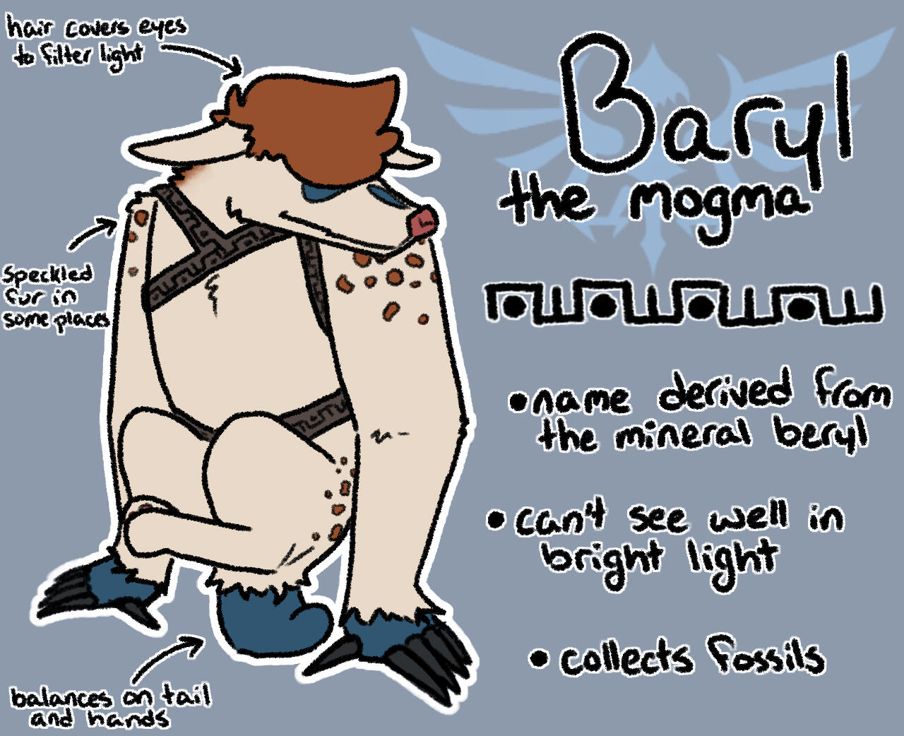 he/himMogma who left Eldin Volcano to further explore the surface. Especially interested in fossils and plants. Doesn't like water.tag - #baryl🐾🦴