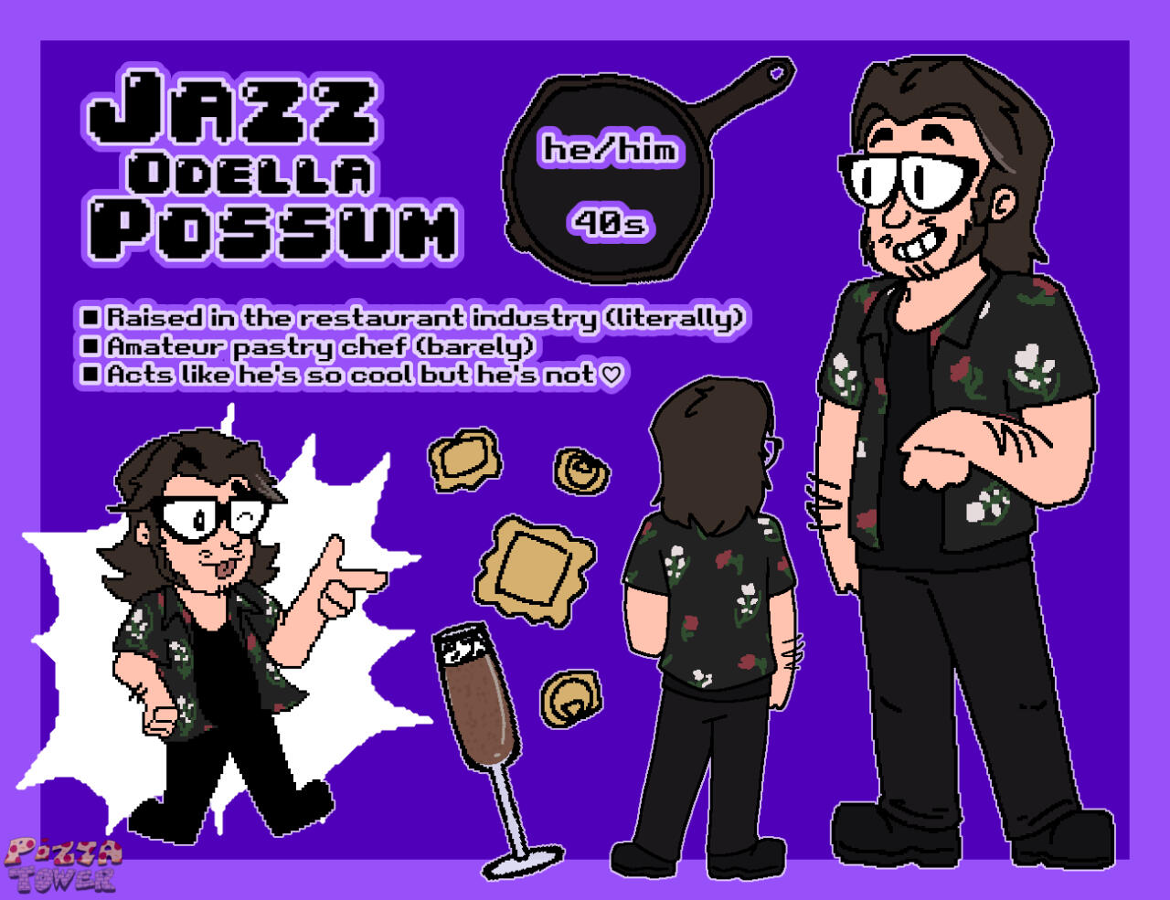 he/himJust another annoying dude with 90s vibes. Listens to a lot of synth, rock, and glam metal. Speaks in 80s slang constantly. Is going to cause problems in a distinctly gay way. Is not an active part of the band, but follows them around anyway.tag - #rozzie🤘🎆